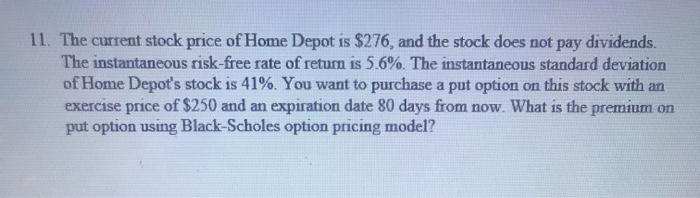 Solved 11 The Current Stock Price Of Home Depot Is 276 Chegg Com
